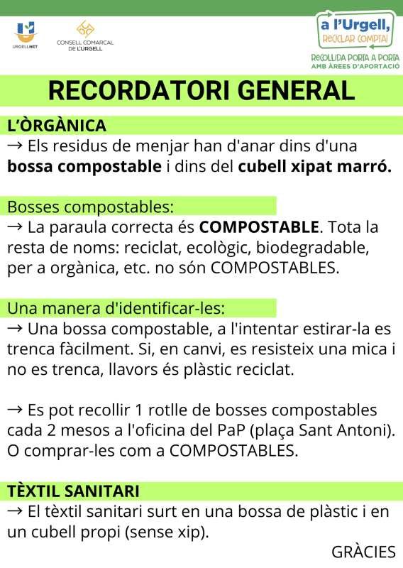 Avisos de la Recollida Porta a Porta
