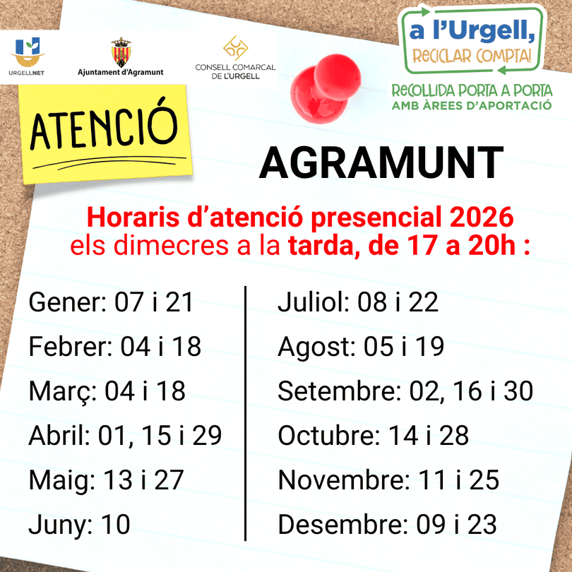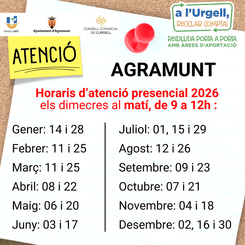 L'Oficina del porta a porta (PaP) a Agramunt està ubicada a l'Espai Cívic.